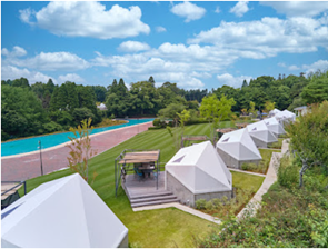 「グランヴォー スパ ヴィレッジ」は、同施設のある千葉県・長柄町の長柄ふる里村が1979年7月に姉妹協定を結んだスイス・旧グランヴォー村との友好関係から生まれた、自然体験と天然温泉が楽しめるグランピング宿泊エリアです。