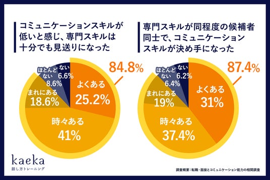 コミュニケーションスキルが低いと感じ、専門スキルは十分でも見送りにした経験のある人事・採用担当者が84.8%にのぼります。