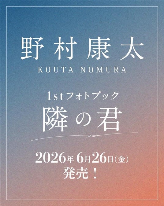 株式会社ホーム社(代表取締役:茂木行雄、本社:東京都千代田区)は、2026年6月26日(金)に野村康太の1stフォトブック『隣の君』を発行いたします。