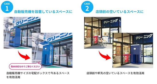 現在の店舗で宅配ボックスを置けるスペースが限られている場合もご安心ください。自動販売機サイズなのでコンパクトに設置が可能です。また防水対応なので、屋根のない屋外でも安心して設置いただけます。