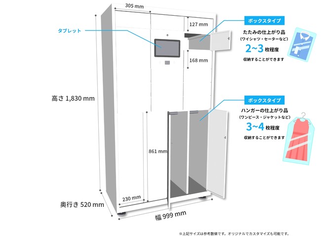 株式会社くじらリアルエステートテックが開発する「スマート宅配ボックスforクリーニング」は、クリーニング店が抱える「営業時間外でもお忙ぎのお客様の仕上がり品を最短でお渡し出来るようにしたい」、「他のお客様の預け入れ対応をしているために、受け取りのみのお客様をお待たせしたくない」等の課題を解決します。