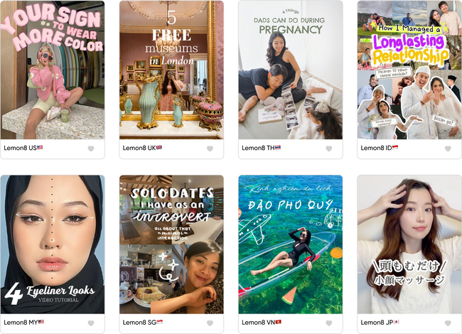 Lemon8は現在、全世界で投稿クリエイターだけで82万人以上が活躍し、趣味や実用的なスキル、日常の何気ない発見など、多岐にわたる投稿を通じてLemon8ユーザーを楽しませています。投稿クリエイターはLemon8の編集ツールを使って発信したい素材を魅力的に仕上げています。種類も豊富なので、誰でも簡単にユーザーの心をつかむ投稿を作れるのも人気の秘訣です。