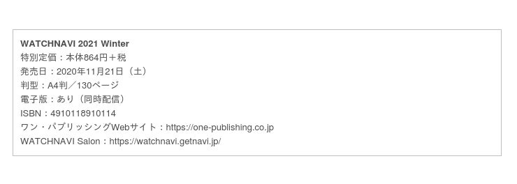 <WATCHNAVI 2021Winter (Vol.80) の見どころ>