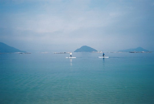 多島美を感じる瀬戸内海でSUP。波の穏やかな瀬戸内海では、初心者から気軽にパドルスポーツに挑戦できます。島の間を抜けて、静かな砂浜で休憩し、瀬戸内の自然と空気を感じながらの海上散歩は特別な一時となることでしょう。