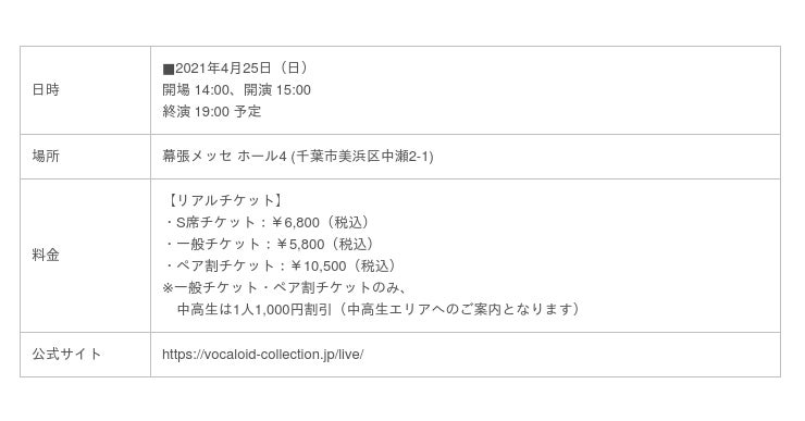 「The VOCALOID Collection ~2021 Spring~ Supported by 東武トップツアーズ」開催概要