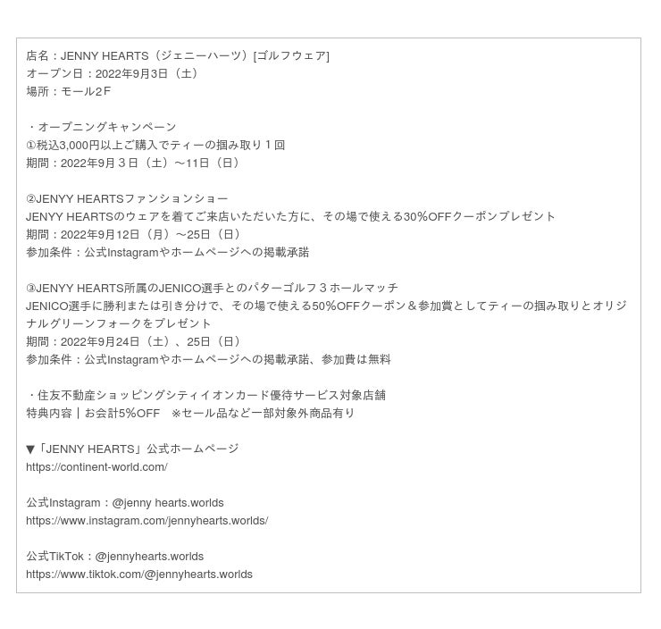 URL:https://www.shopping-sumitomo-rd.com/ariake/shopping/