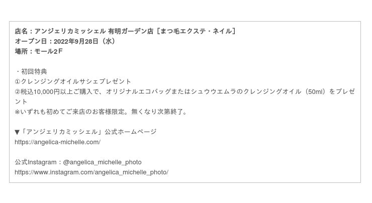 アンジェリカミッシェル 有明ガーデン店[まつ毛エクステ・ネイル]
