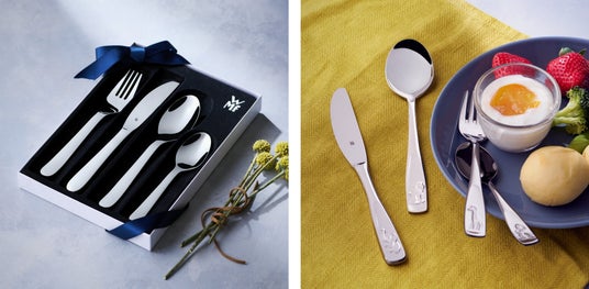WMFが長年培ってきたカトラリー製造における技術により、お子様が大きくなったときにも使える普遍的なデザインと、高品質な子供用カトラリーが生まれました。人間工学に基づいてお子様の小さな手や口に合わせて安全に設計しており、全てのカトラリーに丸みを帯びたデザインを採用。小さな頃から高品質なテーブルウェアに触れることで、お子様が自分で食べる喜びを感じ、ご家族で過ごす食事の時間を大切に、豊かなものにしてほしいというWMFの願いを込めています。
