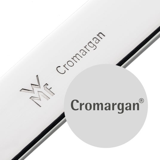 1853年の創業以来、WMFのカトラリーは時代ごとに移り変わるトレンドを巧みに取り入れつつ、ドイツのクラフトマンシップに裏打ちされた品質と普遍的な美しさを守りながら高めてきました。カトラリーの素材に使用している「クロマーガン(Cromargan(R))」は、1927年にWMFが独自開発した高品質ステンレス素材です。クロムの含有量が多く、銀のような輝きを持ち、サビに強く美しい輝きを長く保ちます。