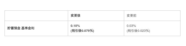 貯蓄預金金利の変更