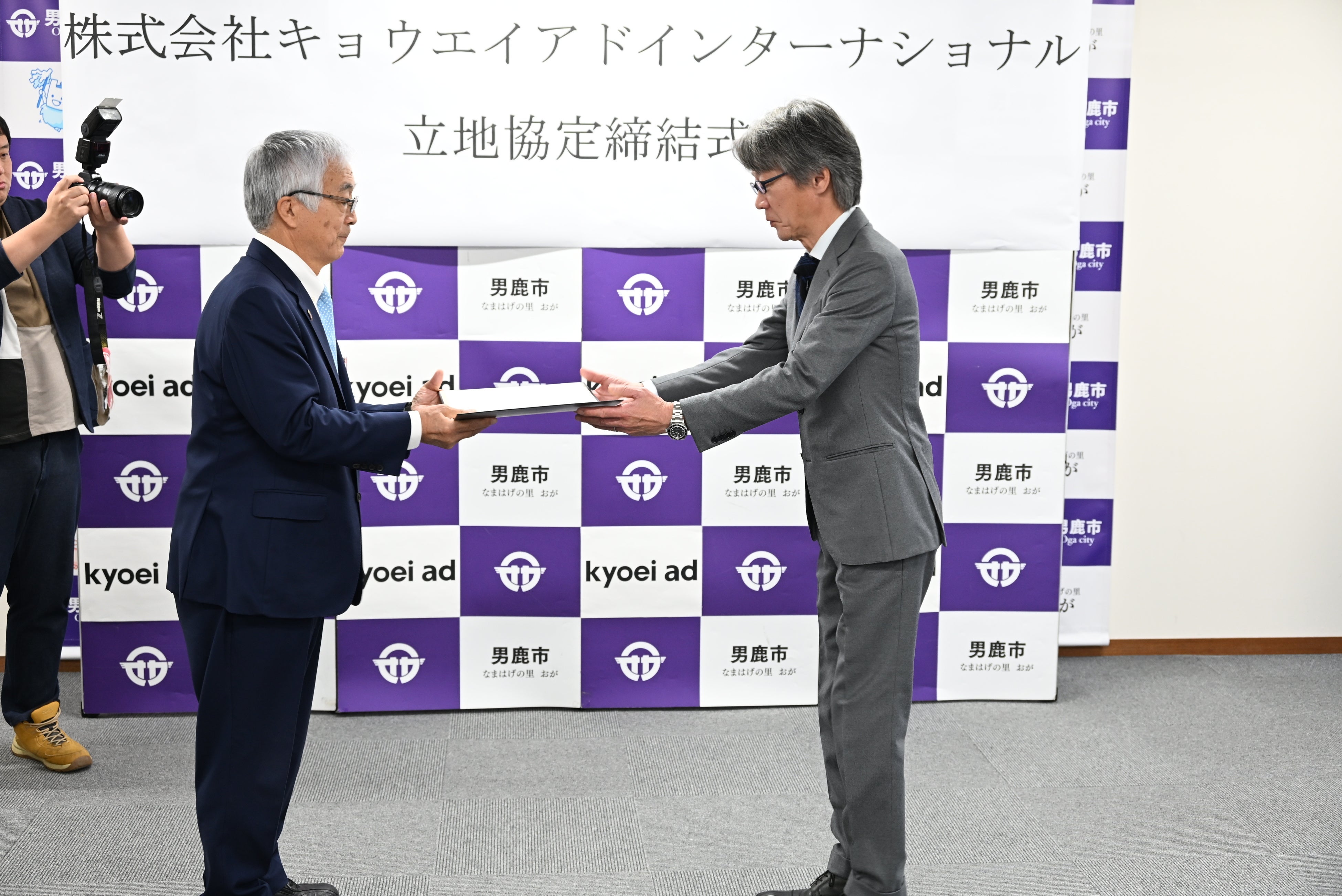 全国でエリアマーケティング事業を展開する株式会社キョウエイアドインターナショナル(本社:東京都千代田区 代表取締役:廣瀬勝⺒ 以下「キョウエイアド」)は、自社のサテライトオフィスを設置した秋田県男鹿市と、令和7年12月19日に立地協定を締結しました。
