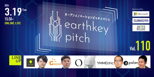 株式会社アースキー(本社:東京都品川区、代表:林 晋之介)では、3月19日(火)15時50分より厳選された スタートアップ企業が登壇するオンラインピッチイベント「earthkey pitch」を開催します!本イベントはこれまでに、 弊社独自の基準で選ばれた500社以上のスタートアップ企業が登壇しています。今回は109回目の開催で、弊社 の基準で選ばれた5社のスタートアップ企業が登壇いたします。