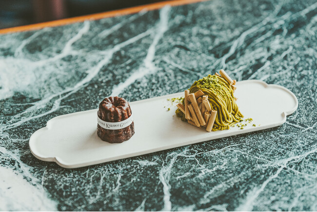 1月にオープンした最大3時間待ちで話題のカフェ「KURAMAE CANNELE CAFE」の新メニュー。桜やピスタチオ、苺を使用した春の芽吹きと素材の香りが感じられるスイーツプレート。