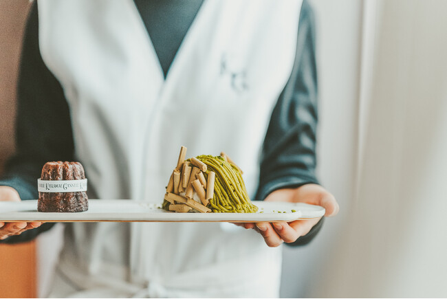 また、スティック状にした桜の葉パウダーを練り込んだメレンゲを添え、滑らかな口当たりのモンブランにサクサクとした食感をアクセントに。桜の開花とともに暖かくなるこれからの季節に、ピッタリのプレートをぜひ「KURAMAE CANNELE CAFE」にてご堪能ください。