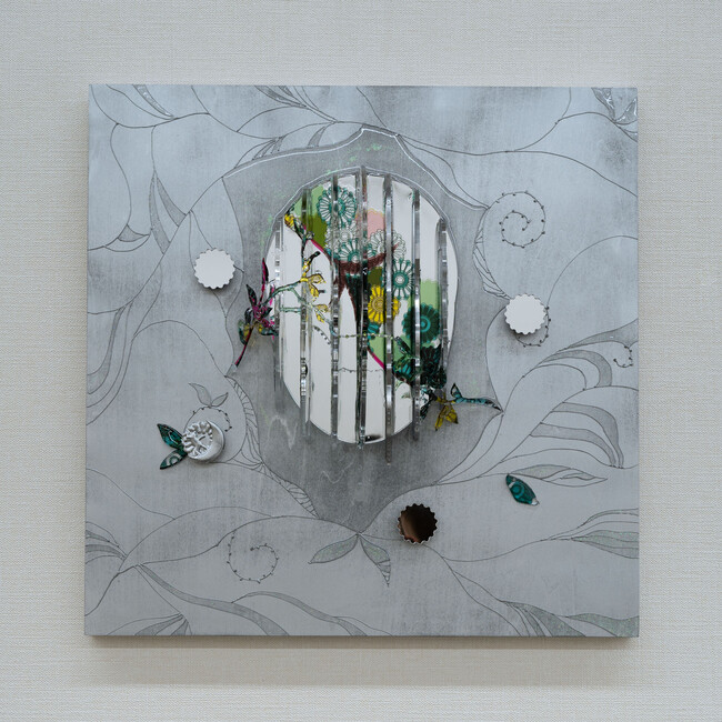 本展では、オリジナルのデジタルイラストと透明樹脂、ミラーを素材に、多様な要素が織りなす“豊かで美しい世界”を描く「The world is beautiful」シリーズと、自身が存在する世界について、もっと知りたいという思いから月乃が作り続ける「Focus to layeres」シリーズを展示します。ギャラリーや鑑賞者の姿なども取り込み、そこにしかない景色が生まれることでしょう。