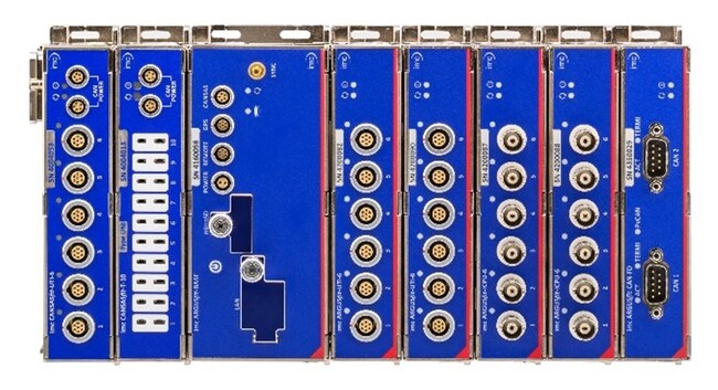 今回imc社が新たに開発した「imc ARGUSfit」は、従来製品の3割程度の大きさ、軽さとなった超小型な筐体で、光ファイバー通信を使った分散配置に対応しており、工具を使わずにクリック式で簡単にモジュール間を結合できるデータロガーです。