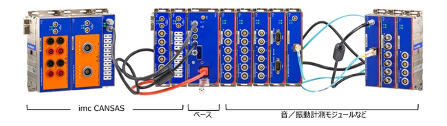 スタンドアローンでの測定にも対応しており、機械の状態監視の用途から、搭載スペースが限定される小型モビリティでの音振動の計測まで幅広い計測に利用できます。光ファイバー通信モジュールを使うことで最大250m離れた距離での分散配置による計測も可能で、風力発電機や鉄道車両、船舶、航空機、橋梁などの大型構造物のモニタリングに適用します。光通信により電気的に絶縁されているため、電気的なノイズに強く、高電位な環境に曝される可能性のある環境でも利用可能です。ユニットの取り外しや取り付けがクリック式なため、モジュール数(チャンネル数)の増減設定が簡単かつ迅速にでき、開発途中で変化する試験内容にも柔軟に対応します。また、既存の「imc CANSASfit」シリーズともクリック接続またはケーブルによりシームレスにつなぎ、「imc CANSASfit」シリーズが提供している高電圧/高絶縁モジュールを接続することにより、バッテリーの評価用途にも適応します。