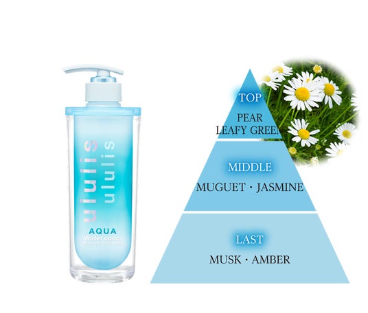 「ウルリス ウォーターコンク モイスチャー ヘアトリートメント」と同じ「アクアカモミールの香り」を採用。多くのお客様にご好評いただいている、さわやかで清潔感のある香りは、暑い季節の気分転換に最適です。