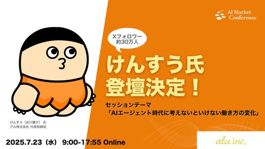 最適なAI会社やAIサービスの選定を支援するコンシェルジュサービス「AI Market」を運営するBizTech株式会社(東京都豊島区、代表取締役 森下 佳宏)が主催する、7月23日開催の国内最大級AIエージェントカンファレンス『AI Market Conference ~「AIエージェント」の現在地と未来が学べる1日~』にXフォロワー約30万人を誇るけんすう(古川健介) 氏の追加登壇が決定しましたので、お知らせ致します。