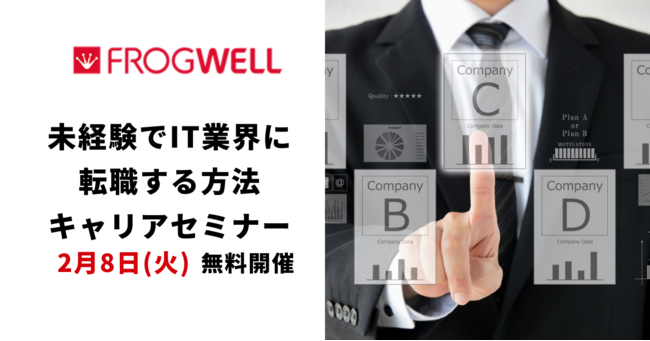 データ・プロセスのコンサルティング及びアウトソーシングサービスを提供しているフロッグウェル株式会社(所在地 : 東京都港区、 代表 : 大田宏之、以下「フロッグウェル」)は、『未経験でIT業界に転職する方法~Salesforce導入コンサルタントというキャリア選択~』をテーマとしたオンラインセミナーを、転職を希望するSalesforce経験者に向けて2月8日(火)に無料開催いたします。