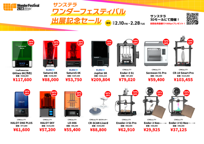 株式会社サンステラは2023年2月 12日(日)に千葉・幕張メッセにて開催される「ワンダーフェスティバル2023冬」に初出展。ECサイトサンステラ3Dモールにて「出展記念セール」を実施します。