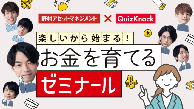 野村アセットマネジメント株式会社(CEO兼代表取締役社長:小池広靖、以下「当社」)は、株式会社baton(代表取締役:衣川洋佑)が運営するQuizKnock(クイズノック)と提携し、投資教育プログラム「お金を育てるゼミナール」を開始しました。QuizKnockから伊沢拓司氏が当社の「資産形成アンバサダー」に就任し、若年層を対象に楽しく資産形成を学ぶ機会を提供します。