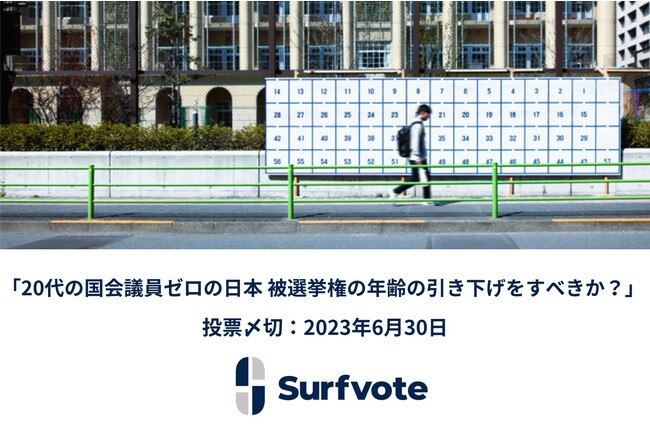 SNSとテクノロジーで社会課題の発見・解決をサポートするICTスタートアップのPolimill株式会社(ポリミル、本社:東京都港区、代表取締役:横田えり、以下Polimill社)は新イシュー「20代の国会議員ゼロの日本 被選挙権の年齢の引き下げをすべきか?」について、当社が運営するSurfvoteでユーザーの意見投票を開始しました。