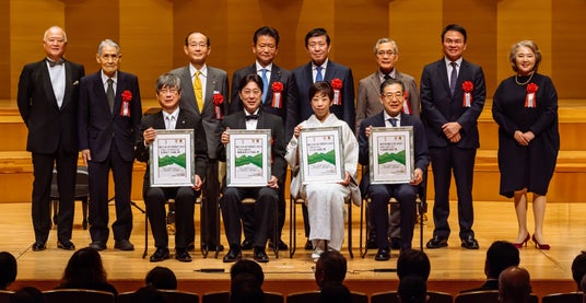 写真上:「癒しと安らぎの環境賞2023」前列は受賞者 左から 室久俊光・日本赤十字社 栃木県支部 足利赤十字病院 院長、志水秀行・学校法人慶應義塾 慶應義塾大学病院 副院長、新村友季子・医療法人真栄会 にいむら病院 理事長、程塚明・医療法人横浜平成会 平成横浜病院 院長/後列は当フォーラム理事 左から 尾尻佳津典、幸田正孝・元厚生事務次官 一般財団法人医療経済研究・社会保険福祉協会 医療経済研究機構 顧問、原田義昭・元環境大臣 弁護士、三ッ林裕己・衆議院議員 元内閣府副大臣 衆議院議員運営委員会理事、門脇孝・日本医学会 第8代会長 国家公務員共済組合連合会虎の門病院 院長、長澤泰・国立大学法人東京大学 名誉教授 学校法人工学院大学 名誉教授 一般財団法人ハピネスライフ財団 理事長、徐志敏・日本正大光明企業合同会社 社長、麻倉未稀・歌手