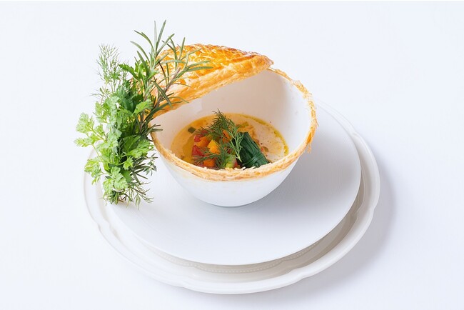 甘鯛と蕪のパイ包み焼き 香草の香る魚介のスープと共に