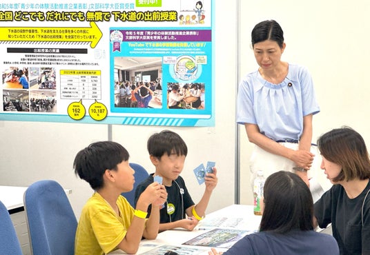 普段目にすることのない下水道についてクイズや実験を交えながら、わかりやすく楽しい授業を提供。2007年からスタートし、これまでに全国47都道府県で実施。累計受講者数は受講者は約85,000人となりました。2024年4月には長年継続してきた活動が認められ、文部科学省より「令和5年度 青少年の体験活動推進企業表彰」で文部科学大臣賞を受賞しました。