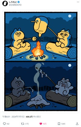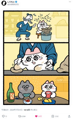 Xのフォロワー24万人(8/1時点)の人気イラストレーターのしりもと先生が描く「ンめねこ」。