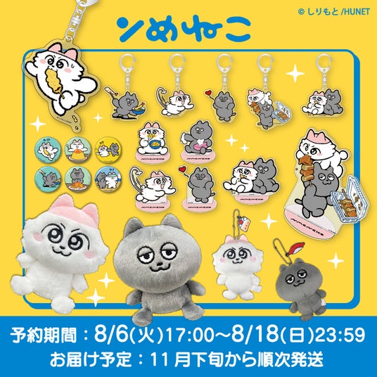 キャラクターグッズやオリジナル雑貨の企画開発を手掛ける株式会社ヒューネット(本社:愛媛県松山市)から人気クリエイターしりもとさんが手掛ける「ンめねこ」グッズを《2024年8月6日(火)》より予約受付開始します!