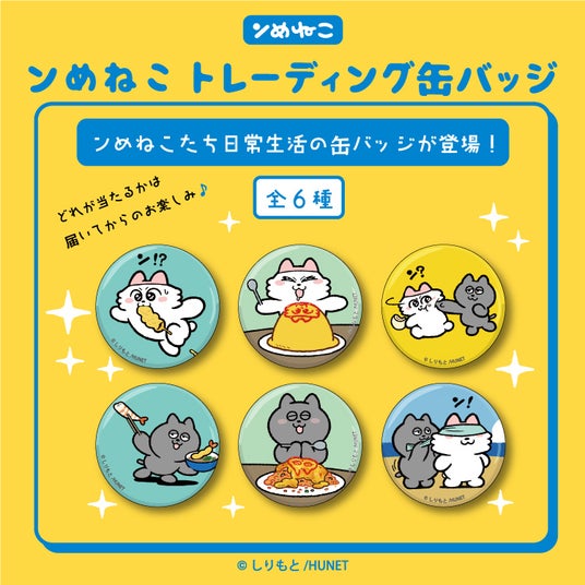 ンめねこたち日常生活の缶バッジが登場!どれが当たるかは届いてからのお楽しみ♪