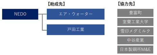エア・ウォーター株式会社(本社:大阪市中央区、以下、エア・ウォーター)と戸田工業株式会社(本社:広島市南区、以下、戸田工業)が国立研究開発法人新エネルギー・産業技術総合開発機構(以下、NEDO)の採択を受けて実施する水素社会構築技術開発事業「豊富町未利用天然ガスを活用した地域CO2フリー水素サプライチェーンの構築(以下、本実証)」に関して、雪印メグミルク株式会社(本社:東京都新宿区、以下雪印メグミルク)が協力先として新たに参画し、地域内における水素エネルギーの利活用実証を行うことを決定しましたので、お知らせいたします。