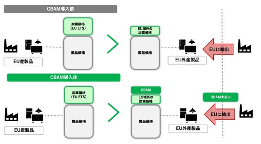 Carbon Boarder Adjustment Mechanismの略称で、炭素国境調整措置と呼ばれています。 CBAMは、EUのFit for 55*¹の一環として2023年5月に設立された新たな規制で、非EU加盟国の温室効果ガス排出削減に対するインセンティブを生み出すことを目的としており、カーボンリーケージ*²への対応措置として期待されています。報告が必要なCBAM製品は、セメント・電気・肥料・鉄と鋼鉄・アルミニウム・化学物質(水素)の6品目に分類され、EUにこれらの商品を輸出するEU域外企業(日本企業も含む)が対象になります。