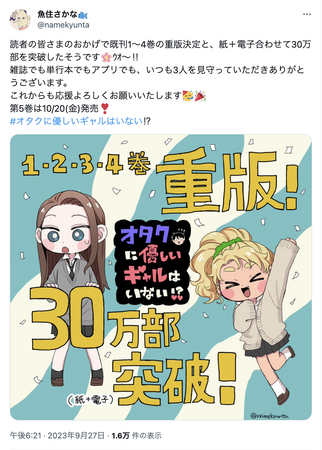 重版を記念し、漫画を担当する 魚住さかな が自身のSNSアカウントにて、投稿を行っている。