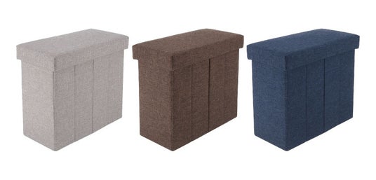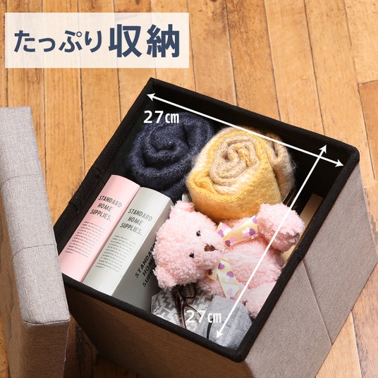 形はスクエア・ベンチ・インナーボックスの3タイプ。スクエア型はコンパクトな設計で、お部屋の隅や玄関などの限られたスペースにもすっきり収まります。ベンチ型はたっぷり収納できるうえ、ゆったりと腰掛けられるため、来客時の簡易イスとしても活用できます。インナーボックス型は一般的なカラーボックスにピッタリ収まり、持ち手つきでサッと引き出せるため、出し入れもスムーズです。