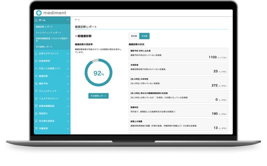 「mediment」は、健康経営や従業員の健康診断・ストレスチェック業務を担う人事労務担当者向けクラウドサービスです。medimentの活用により、健康診断・ストレスチェックの実施や結果データ管理、産業医面談の調整、労働基準監督署への報告書作成、特殊健診の管理など、これまで人事労務
