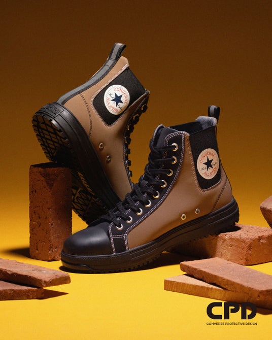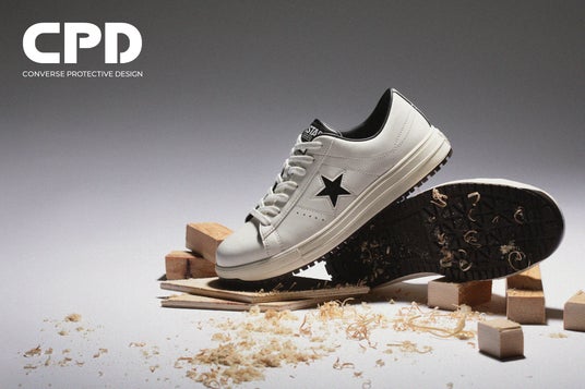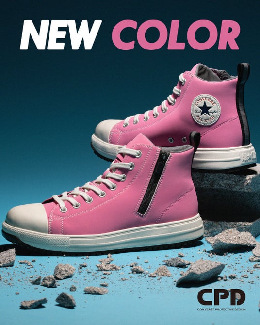 CPDは、JSAA規格が定める安全性や耐久性、コンバースならではのデザイン性を兼ね備えたプロテクティブスニーカーライン。つま先部の耐衝撃性や耐圧迫性、表底の剥離抵抗、耐滑性、踵部の衝撃吸収性などの性能に加え、作業において必要となるクッション性や屈曲性など機能を付加。
