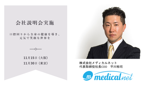 株式会社メディカルネット(本社:東京都渋谷区、代表取締役会長CEO:平川大、以下「当社」)は、2022年11月15日(大阪)と11月30日(東京)に、日本証券新聞社主催の個人投資家向け説明会に参加いたします。