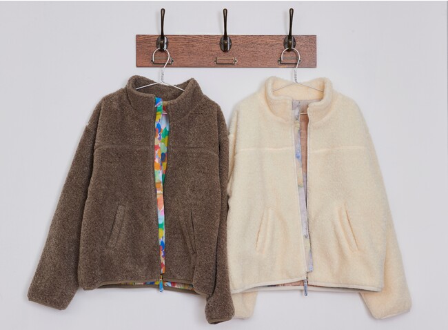また、ベルメゾンネットやベルメゾン JRE MALL店では、裏地にアートが使用されたボアブルゾンや、背面にアートプリントが施されたスウェットを販売します。これらの新商品は、ユニセックスで着用できるほか、キッズサイズもご用意しており、ペアルックや家族おそろいで着られる商品になっています。