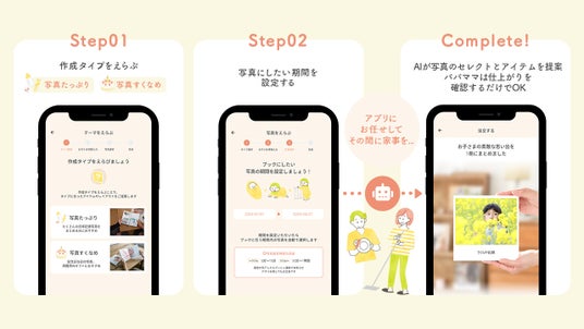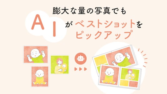 「増え続ける子どもの写真をどうにかしたい!」そんなママパパの声から生まれたAndroid版の新アプリ。家事や育児の合間に簡単にフォトブックを作成し、AIが自動で素敵な思い出をまとめます。