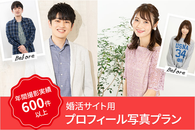衣装・ヘアメイク・撮影がセットになった婚活に最適なプロフィール写真が撮れる人気のプラン。