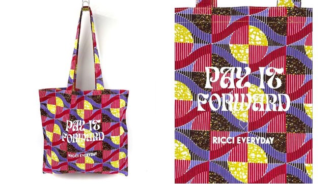キャンペーンのコンセプトである“Pay It Forward”のメッセージをプリントした、RICCI EVERYDAYらしいカラフルなアフリカンプリントのトートバッグを発売します。