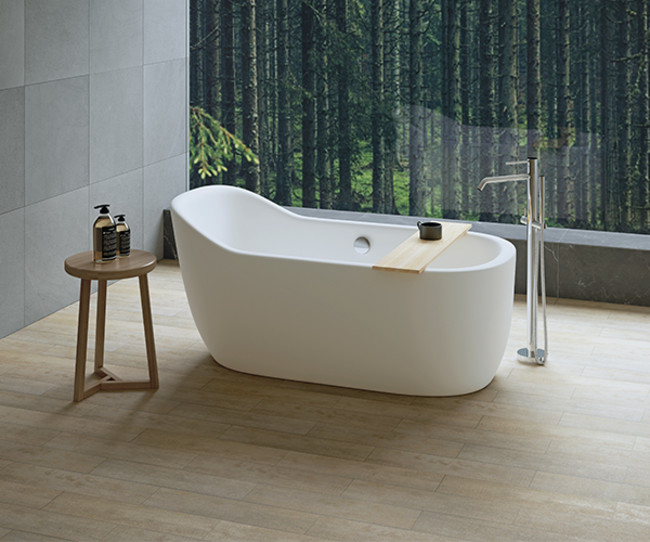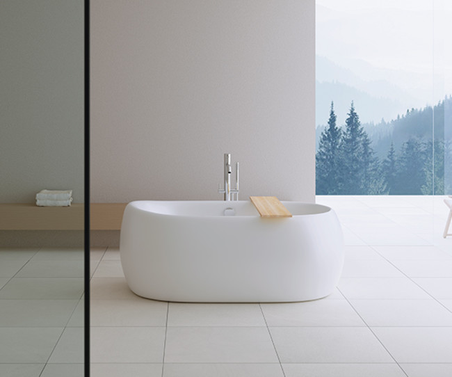 思わず触れたくなる、大らかな曲面フォルムが印象的。ヘッドレストは底面に向かってなだらかに傾斜し、頭も身体もそっと支えてくれます。