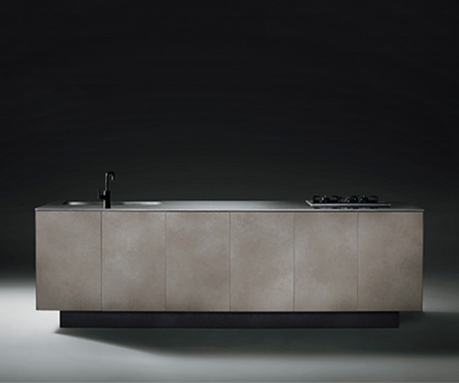 空中に浮かび上がるようなフローティングスタイルにより、重厚になりすぎない軽やかさを演出。LDKを人に見せたくなる空間へと昇華させるキッチンです。