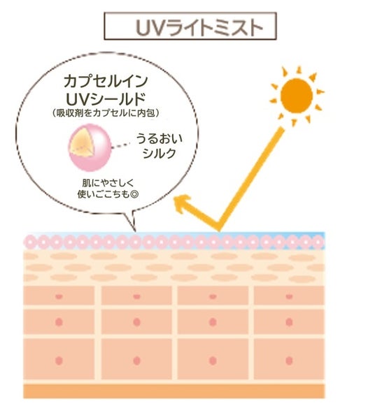 紫外線吸収剤が直接肌に触れないカプセルインUVシールド処方で、おでかけデビューの赤ちゃん(生後1か月)から敏感肌の方もお使いいただけます。