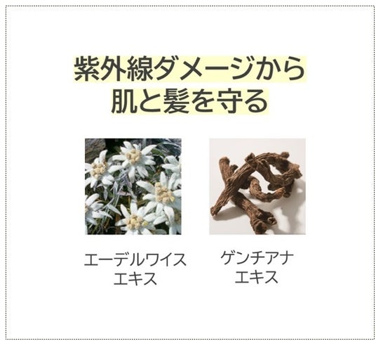 紫外線ダメージから髪と頭皮、肌を守りながら、うるおいとバリアをサポートするスキンケア成分をたっぷりと配合。