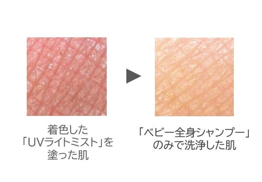 ※画像はイメージです「ママ&キッズ UVライトミスト」は弱酸性低刺激洗浄料のみできれいに落とせます。泡を広げてなじませるだけで、ごしごしこすらずに落とすことが出来るから肌への負担が少なく、安心して使えます。