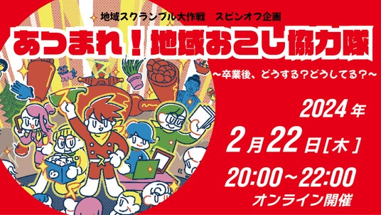 このたび、全国各地の地域おこし協力隊の皆様が、情報交換や相互交流を行うイベント「あつまれ! 地域おこし協力隊」をオンライン開催いたします。本イベントは、昨年12月に主催した「地域スクランブル大作戦」に参加いただいた地域おこし協力隊の皆様から、「地域おこし協力隊同士が交流できる機会や、地域を越えた連携を相談できる場がほしい」というお声をいただいたことをきっかけに企画されました。